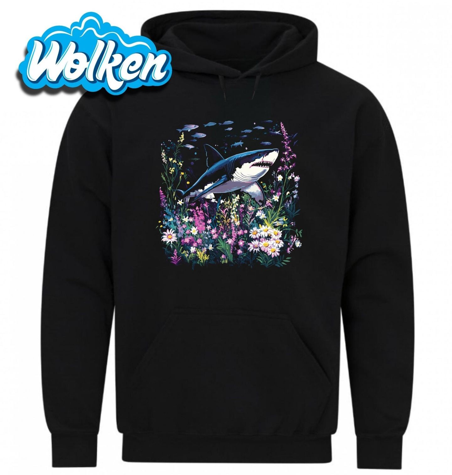 Pánská mikina Žralok a oceán květin. Když se moře promění v louku a oceán pokryjí květiny, vznikne obraz plný kontrastů a fantazie. Uprostřed této květinové bouře pluje žralok – elegantní, klidný, ale stále respektovaný predátor. Kolem něj proplouvají ryby jako střípky podvodní pohádky. Tohle tričko je oslavou nespoutané přírody, kde se potkává síla oceánu s jemností lučních květin.