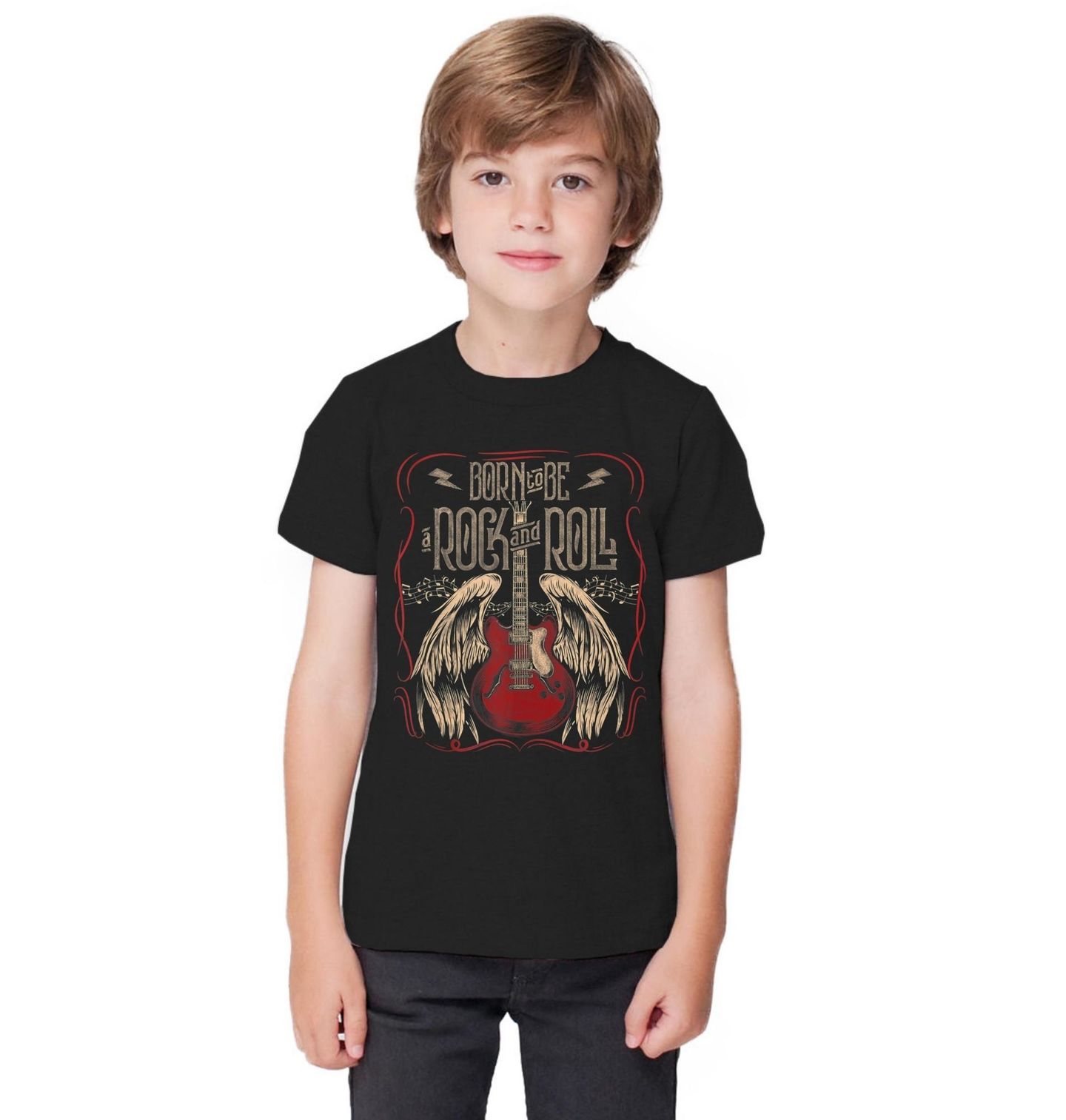 Dětské tričko Zrozen pro Rock and Roll Born to Be a Rock and Roll. Vintage typografie, hudební noty a dekorativní prvky vytvářejí silný design inspirovaný koncertní atmosférou a svobodou, kterou přináší rock and roll. Kytara je ústředním symbolem celého motivu a představuje vášeň pro hudbu, energii pódia i životní styl, kde hraje hlavní roli rock and roll. Tento motiv je ideální na koncert, festival i párty, kde se hudba rozezní naplno.
